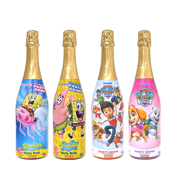 Non-alcoholic sparkling with Sponge Bob and Paw Patrol images