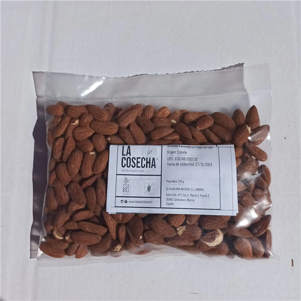 Unpeeled and raw organic almonds