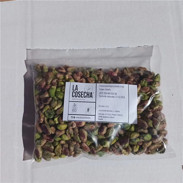 Raw, shelled organic pistachio nuts