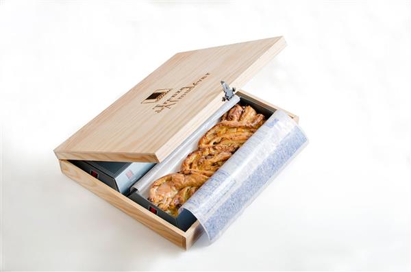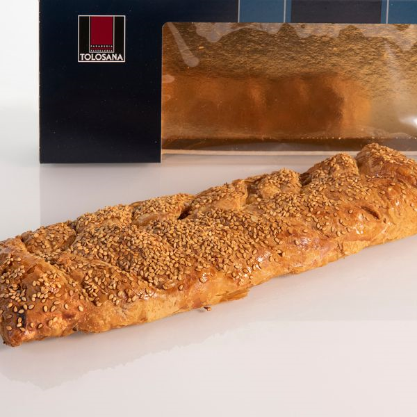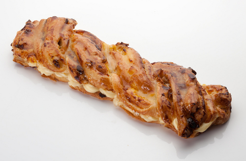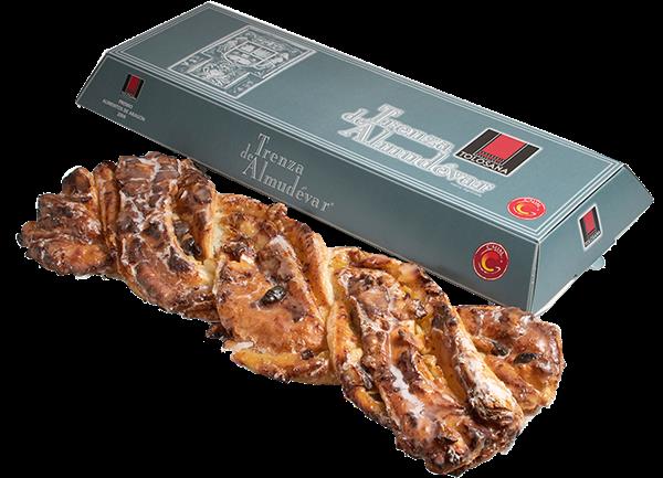 Especialidad de bollería con mantequilla, yema, nueces, almendras y pasas maceradas al ron.