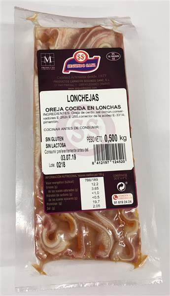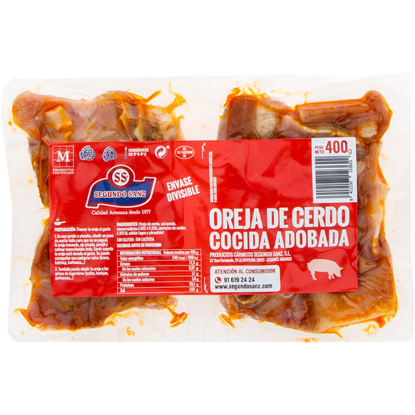 Oreja de cerdo seleccionada, cocida y cortada en finas lonchas, ideal para tostar