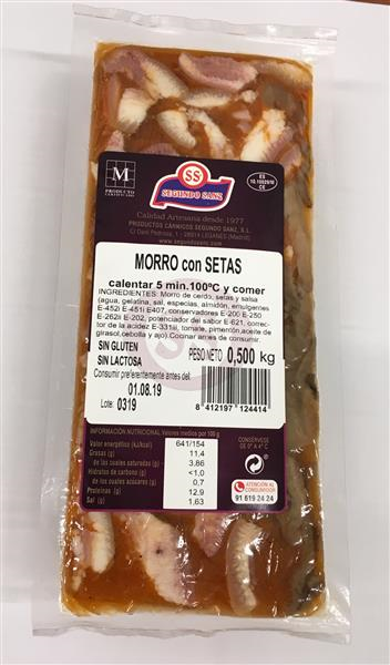Morro de cerdo guisado con setas cultivadas. Espectacular !!!!