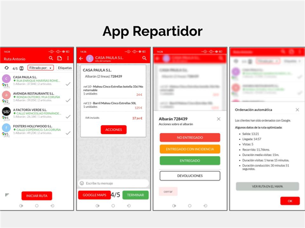 App para vendedores de distribuidoras. Emite y recibe pedidos. Registra cobros. Organiza ruta.