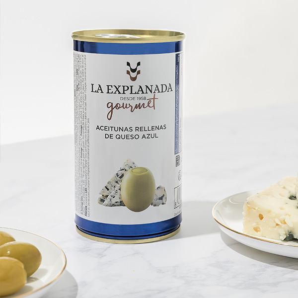 Aceitunas manzanilla y hojiblanca de la mejor calidad, de gran tamaño y rellenas de queso azul