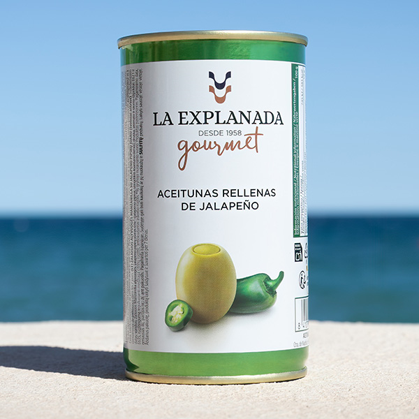 Aceitunas manzanilla y hojiblanca de la mejor calidad, de gran tamaño y rellenas de jalapeño crunchy