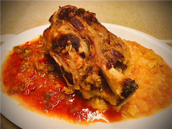Codillo de cerdo al Chilindrón con Parmentier