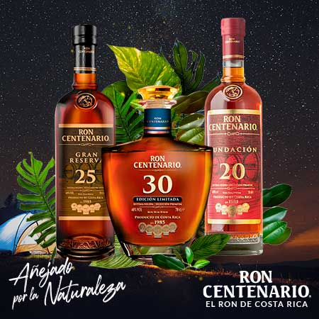 Ron Centenario es un producto con sello costarricense, elaborado de manera artesanal.Su aroma irrepetible nace del proceso de añejado a partir de barriles de roble blanco americano que contuvieron whisky escocés lo que lo hace único en su categoría. Su amplia gama nace desde un ron añejado 5 años hasta su alta gama de rones añejados hasta 30 años.