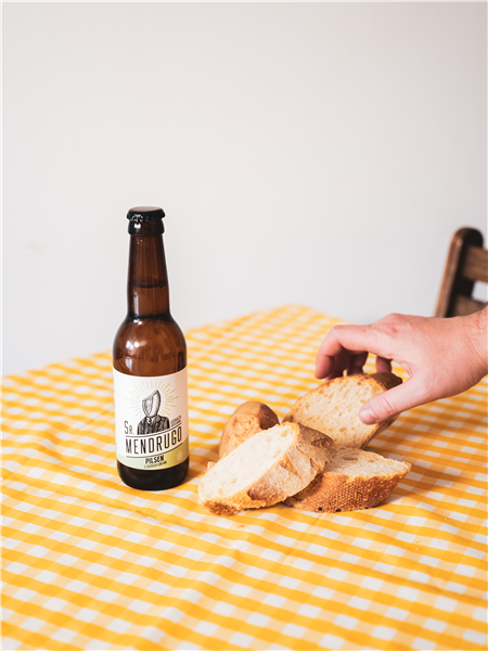 - Sr Mendrugo es una de nuestras últimas creaciones, nacida para luchar contra el desperdicio alimentario, es una cerveza hecha con excedentes de pan que recogemos de forma local de establecimientos que ya no pueden venderlo, a pesar de estar en perfectas condiciones. Disminuimos así la cantidad de pan que se tira a la basura, así como la huella hídrica, ya que sustituimos el cultivo de cebada, con la cantidad de agua que eso conlleva, por pan ya creado.