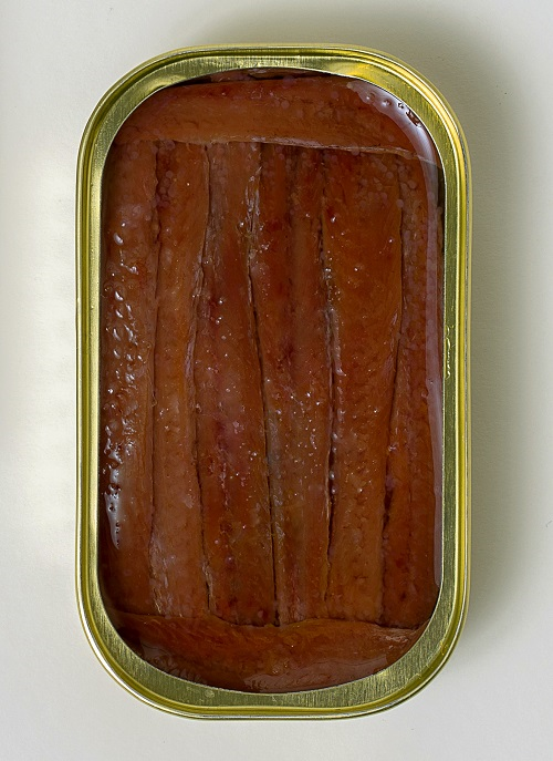 Anchoa del Cantábrico procedente de costera. Se procesa recién capturada de forma tradicional. Saladas, prensadas y mantenidas a temperatura controlada durante el largo proceso de maduración. Sobado manual eliminando espinas y piel. Empacadas una a una y conservadas en aceite de oliva.