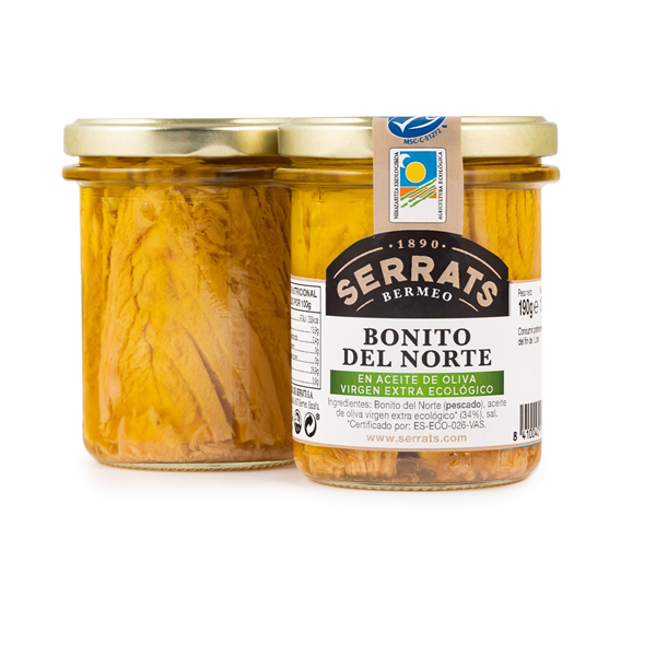 Para la elaboración del frasco de Bonito del Norte Serrats con Aceite de Oliva Virgen Extra Ecológico, utilizamos los lomos del Bonito, limpiados y envasados a mano, a los que añadimos el Aceite de Oliva Virgen Extra Ecológico. Este es el aceite de oliva llevado a su máxima calidad en todos los sentidos. Es un aceite de sabor y aroma realmente especiales, que proviene de aceitunas cultivadas respetando los requisitos de la agricultura ecológica.