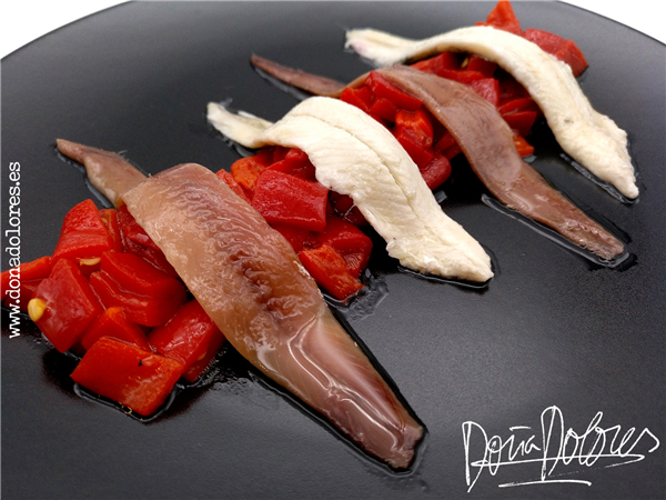 Filetes de boquerón y anchoas del Cantábrico marinados en vinagre con aceite