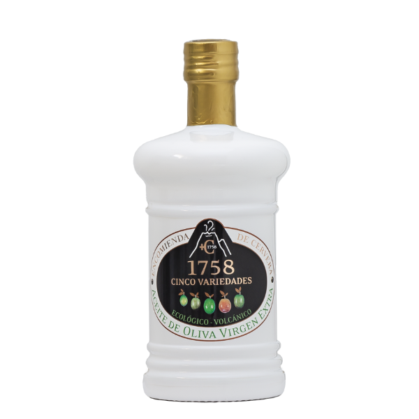 Aceite de Oliva Virgen Extra de Origen VOLCÁNICO hecho de las variedades: Alfafara, Arbequina, Arroniz, Changlot Real y Picual.