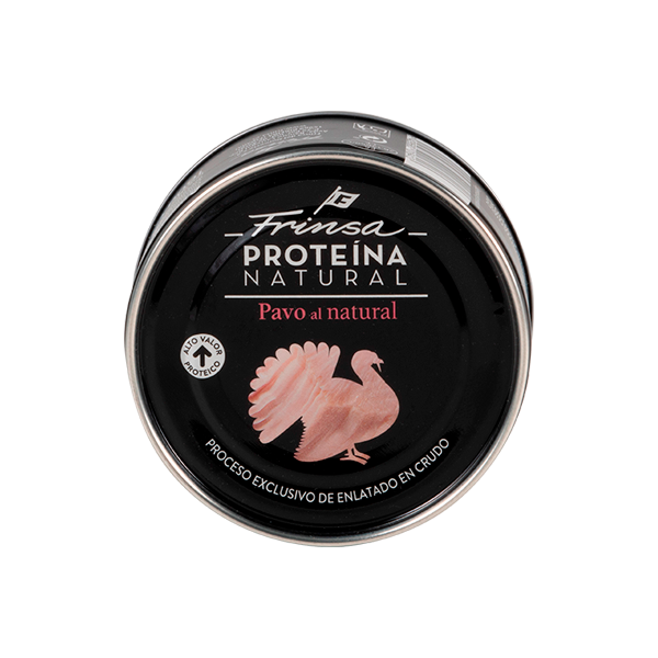 El pavo en conserva al natural de Frinsa, se elabora con pechugas seleccionadas exclusivamente por su calidad a través de un proceso de enlatado en crudo, que consiste en cocinar el producto una única vez, durante el proceso de esterilización, de tal manera que las propiedades del producto permanecen prácticamente intactas. Entre estas propiedades, destaca el alto nivel de proteínas de alto valor biológico cuya ración se completa al consumir la conserva junto con el líquido de cobertura (a base de agua y sal).