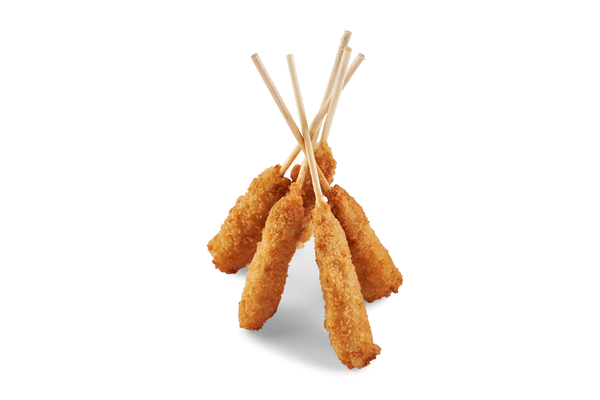 Brocheta de Gambón gigante envuelto en un crujiente rebozado Panko. Producto ultracongelado.