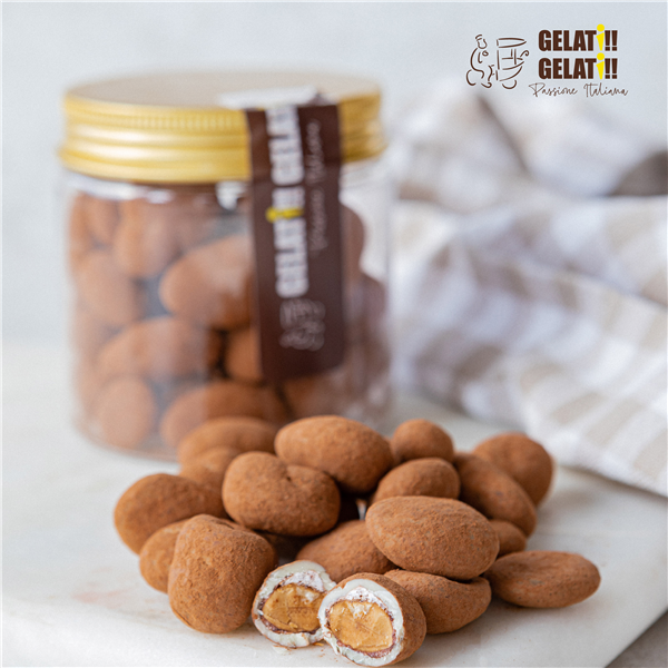 Almendras o nueces de macadamia caramelizadas recubiertas de chocolate.