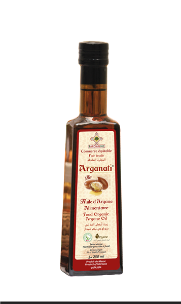 GIE TARGANINE es un grupo de seis cooperativas que producen aceite de argán orgánico en el contexto del comercio justo (Fair For Life). El grupo Targanine fue creado en octubre de 2003 y es un proyecto socioeconómico que tiene como objetivo:- mejorar la situación socioeconómica de mujeres rurales aumentando sus ingresos y mejorando las condiciones laborales.-Proporcionar servicios compartidos a las cooperativas socias:• Promoción de las cooperativas y sus productos. • Apoyo técnico para el control de calidad, higiene, trazabilidad y seguridad de los productos. • Establecimiento y gestión de relaciones comerciales. Targanine garantiza productos de calidad y trazabilidad completa desde el fruto de argán recolectado hasta el producto final (aceite). Todos los productos Targanine están certificados como orgánicos por ECOCERT.