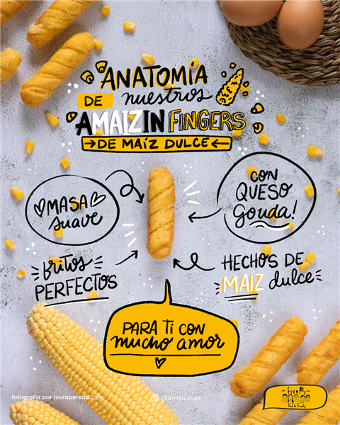AMAIZIN eleva el concepto de picoteo a través de una deliciosa fusión gastronómica donde se encuentran la diversidad de sabores latinos con la sofisticación de la cocina española en comidas prácticas, fáciles de servir y que invitan a compartir y disfrutar en familia y amigos. El maíz es un alimento versátil y nutritivo que ha sido un pilar fundamental en la alimentación de muchas culturas alrededor del mundo durante siglos y AMAIZIN lo hace protagonista en sus productos logrando combinar los sabores de dos continentes en un solo bocado. AMAIZIN posibilita la conexión con las raíces y tradiciones latinas a través de sus platos más emblemáticos como son los tequeños, arepas y empanadas de una forma práctica, accesible y de calidad.