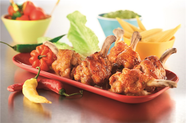 Blanquetas de pollo, tipo Tulipas, marinadas con la receta mejicana, asadas, congeladas.