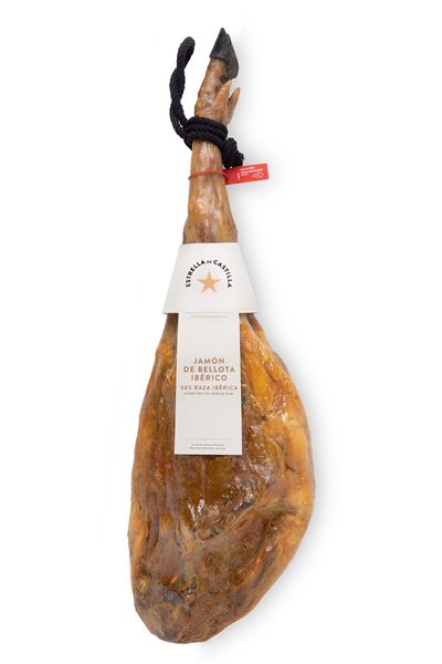Jamón de bellota ibérico 50% Raza Ibérica, con un mínimo de 36 meses de curación.