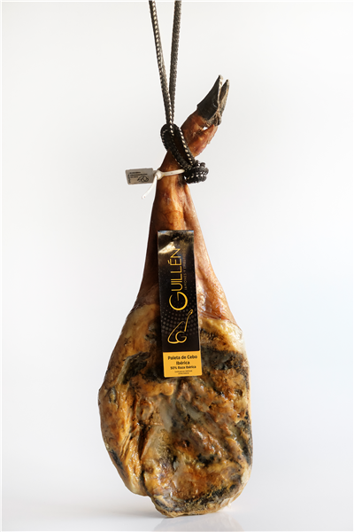 - Producto obtenido de las patas delanteras de cerdos de raza ibérica alimentados principalmente de cereales y piensos.