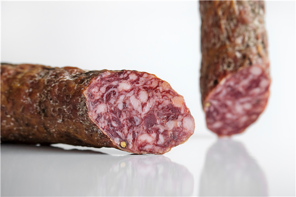 - Mezcla de carne de cerdo ibérico picada, adicionada con condimentos, especias y/o aditivos autorizados, amasada, embutida en tripas naturales o artificiales, y que ha sufrido un proceso de maduración-desecación.