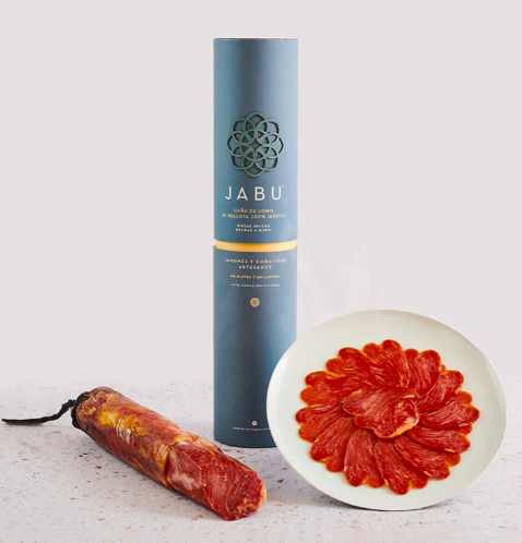 La caña de lomo JABU es la parte más noble del cerdo. Gracias a un lento proceso de curación, desprende unos aromas intensos y dulces, con notas suaves y agradables. Su textura suave con finas vetas de grasa junto a su sabor, dan lugar al mejor resultado: Máxima jugosidad, delicadeza y ternura en el paladar.