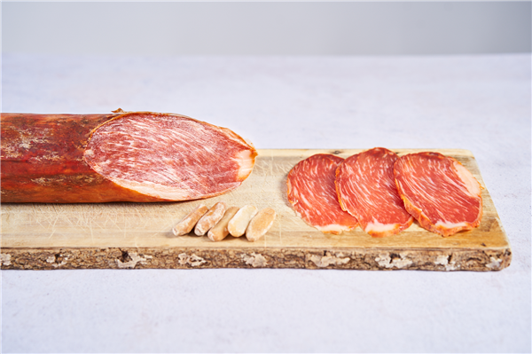 Nuestro Lomo de Bellota Ibérico procede de las mejores piezas en fresco extraídas de cerdos ibéricos con una alimentación basada en bellotas y demás frutos que le ofrece la dehesa salmantina y extremeña. Una dieta exclusiva que realza la presencia de vetas de grasa infiltrada, otorgando a la pieza un aspecto elegante y un sabor insuperable.