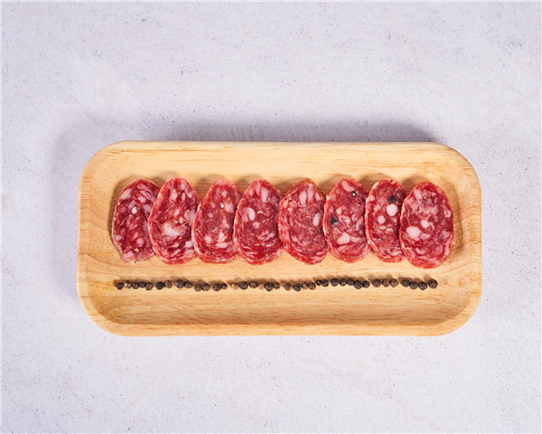 El Salchichón Ibérico de Vela procede de una mezcla de nuestras carnes frescas picadas y adobadas de forma tradicional. Debido a su forma estrecha y alargada es una pieza muy útil para el día a día, destaca por ser un producto que a lo largo de los años ha sabido acoplarse a la sociedad actual siendo cada vez más protagonista.
