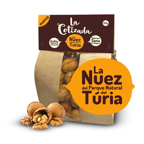 La Cotizada es la marca de nueces ecológicas certificadas y cultivadas del Parque Natural del Turia. Quizás sea la tierra bien tratada, quizás sea el microclima existente o tal vez la proximidad del cultivo a tu hogar, pero el hecho cierto es que se trata de una nuez sabrosa y de buen calibre que sorprende al probarla.