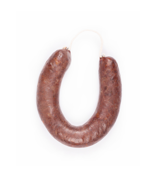 ESTÁ ELABORADA CON TOCINO DE CERDO, CEBOLLA NATURAL COCIDA Y ESPECIES NATURALES. EMBUTIDA EN TRIPA NATURAL. EXISTEN DOS FORMATOS EN HERRADURA Y/O ROSARIO. ELABORADO CON: SANGRE, TOCINO Y MANTECA DE CERDO, CEBOLLA CODIDA, SAL, PIMIENTA NEGRA MOLIDA, PIMENTÓN DULCE, PIMIENTO CURADO FRITO, PAN (SIN GLUTEN), ANÍS, CLAVO, CANELA Y ARROZ. DOS VARIEDADES: DULCE O PICANTE.