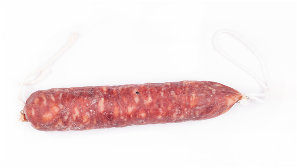 ELABORADO CON EL MAGRO DE CERDO, PREVIAMENTE SELECCIONADO Y ESCOGIDO PARA POSTERIORMENTE SER PICADO Y ALIÑADO CON NUEZ MOSCADA, PIMIENTA NEGRA Y AJO. EMBUTIDO EN TRIPA CULAR DE CERDO. SU CURACIÓN ES DE 40 A 60 DÍAS. SU PESO APROXIMADO ES DE MÁS DE 400GR POR TRIPA. CONTIENE: MAGRO DE PRIMERA, SAL, PIMIENTA MOLIDA, PIMIENTA EN GRANO, NUEZ MOSCADA Y COÑAC.