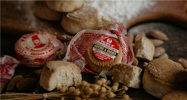 Este dulce distintivo de la variada repostería de nuestro Siglo de Oro, compuesto de harina de trigo, azúcar glas, manteca de cerdo - de la que recibe el nombre de mantecado - y harina de almendra Marcona, se elaboraba artesanalmente en pequeños bloques. El paso del tiempo redujo el tamaño del dulce y lo envolvía en papel de seda.