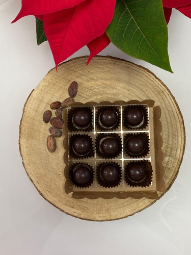 BOMBON DE CHOCOLATE PERUANO RELLENO DE LICOR MESURA , ESFERICO , CAPA CRUJIENTE
