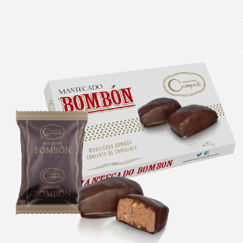 Mantecado Bombón cubierto de chocolate y trozos de almendra