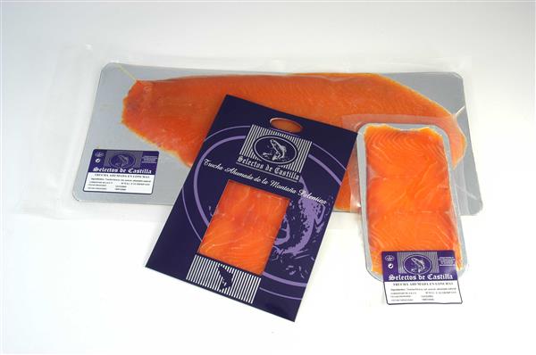 Presentación: lomo de trucha loncheado. sobre de 100grs con o sín estuche