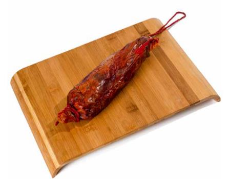 Pieza procedente de cerdos ibéricos, alimentados a base de bellotas, hierbas y rastrojos al aire libre en las dehesas. Adobado con pimentón DO de la Vera (Cáceres), especias naturales, sal, ajo y orégano. Se caracteriza por un extraordinario olor y aroma.