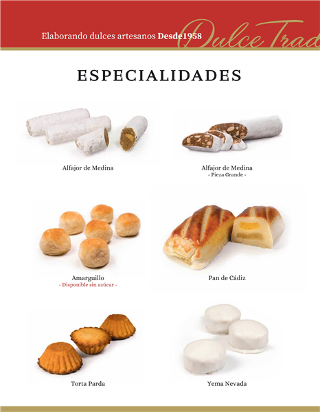 Family business dedicated to the production of artisan sweets and the exquisite pastries of Medina Sidonia, highlighting typical specialties such as Alfajor de Medina, Torta Parda, Amarguillos, Pan de Cádiz or Yemas Nevadas.