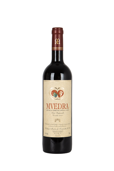 MUEDRA CRIANZA TINTO, TEMPRANILLO. D.O.RUEDA. VIÑEDO VIEJO. BARRICAS DE ROBLE AMERICANO Y FRANCÉS.