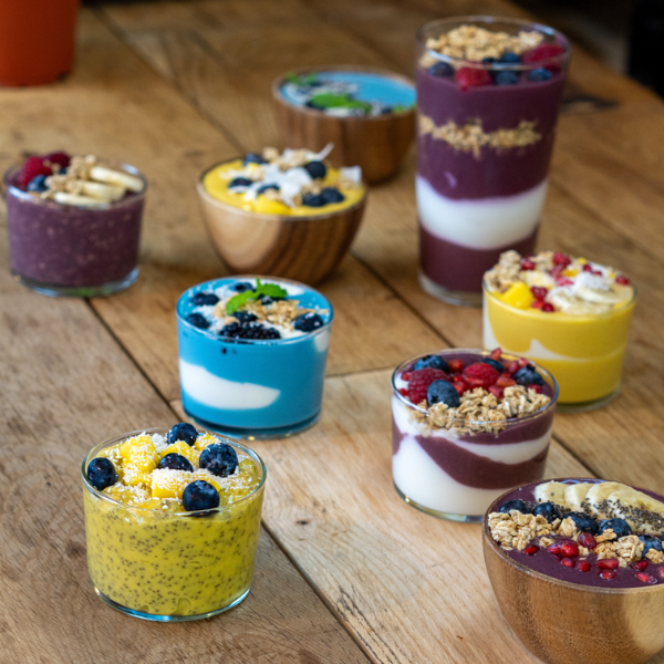 Cree smoothie bowls sin batidora! Descongele nuestras gotas y añada sus ingredientes favoritos.