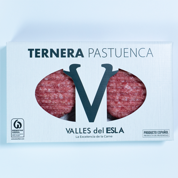 Hamburguesa de ternera, alimentada con pastos de montaña para garantizar sabor, jugosidad y calidad.