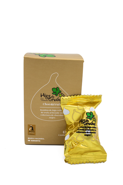BOMBON DE HIGO RELLENO DE TRUFA AL BRANDY CON COBERTURA DE CHOCOLATE NEGRO