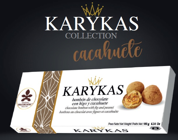 - Karykas, es nuestra linea de bombones de innovación, trabajamos diferentes nucleos con diferentes pralines artesanales que elaboramos nosotros con sabores como el yogur griego, té matcha, ruby con sal del Himalaya, cacahuete con cacao o caramelo salado con dulce de leche. Karykas es un nuevo concepto de bombones únicos en el mundo.Nuestro equipo, está en permanente formación y actualización para lograr una excelente calidad en nuestros bombones y así poder satisfacer a nuestros clientes. Cuidamos hasta el último detalle, siguiendo todos los controles de calidad para poder ofrecer unos Bombones Gourmet.