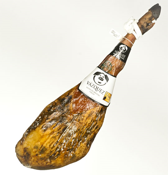 Jamón de cerdo ibérico raza puro, criado en extensivo en dehesa.