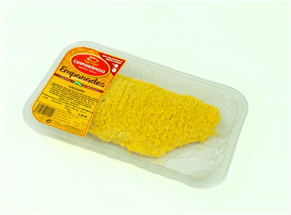 Pechuga de pollo, dos lonchas de jamon reserva Campohermoso y una loncha central queso loncheado.