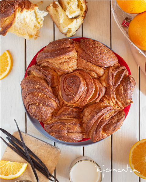 Pastel en forma de rosas hecho de masa de levadura rellena de mantequilla y azúcar