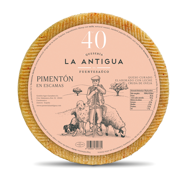 Queso de oveja con 6 meses, escamas de pimentón, corteza natural y de rebaños de pastoreo