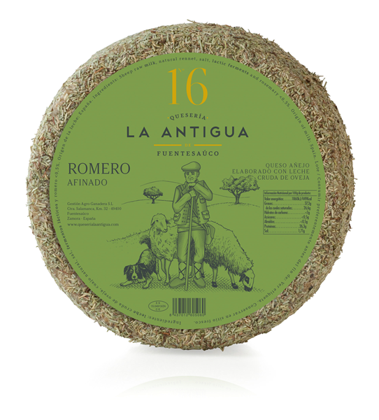 Queso con más de 12 meses de curación, afinado con romero, corteza natural y de rebaños de pastoreo