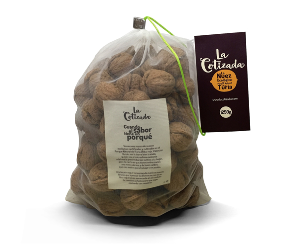 La Cotizada es la marca de nueces ecológicas certificadas y cultivadas del Parque Natural del Turia. Quizás sea la tierra bien tratada, quizás sea el microclima existente o tal vez la proximidad del cultivo a tu hogar, pero el hecho cierto es que se trata de una nuez sabrosa y de buen calibre que sorprende al probarla.