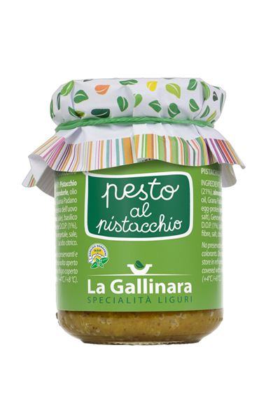 Pesto de pistacho con aceite de oliva, queso Grana Padano, Albahaca genovesa D.O.P.
