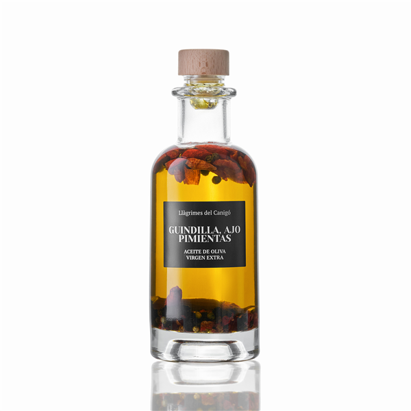 Utilizando ingredientes naturales y de alta calidad, como hierbas aromáticas autóctonas, frutas frescas y especias seleccionadas, ha logrado crear combinaciones de sabores únicas que realzan el carácter del aceite de oliva sin opacarlo .La marca Llàgrimes del Canigó hace referencia a la montaña sagrada del Empordà, el Canigó. Cada botella de aceite de oliva lleva consigo la esencia de esta región, capturando la pasión y la delicadeza con la que se ha creado.